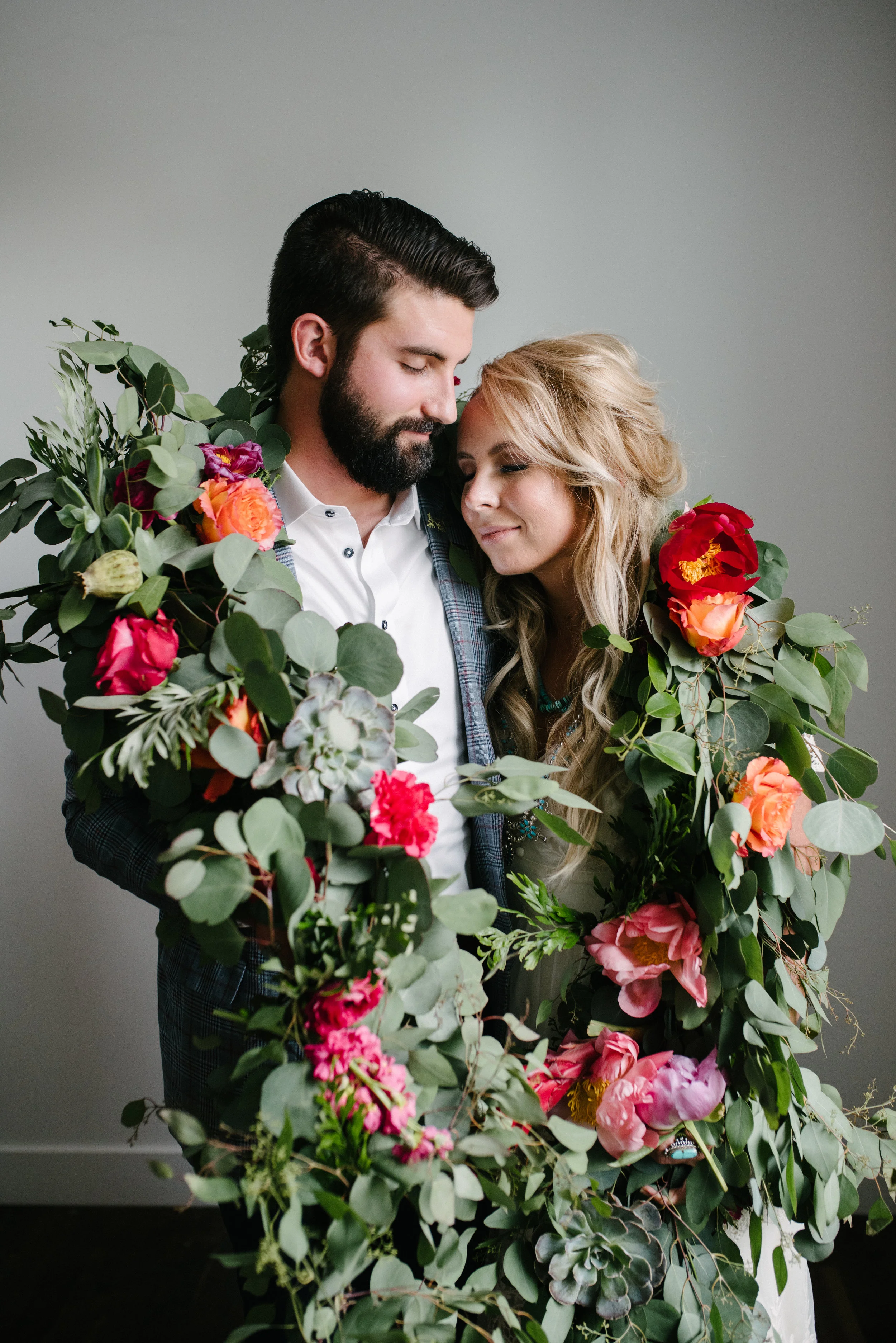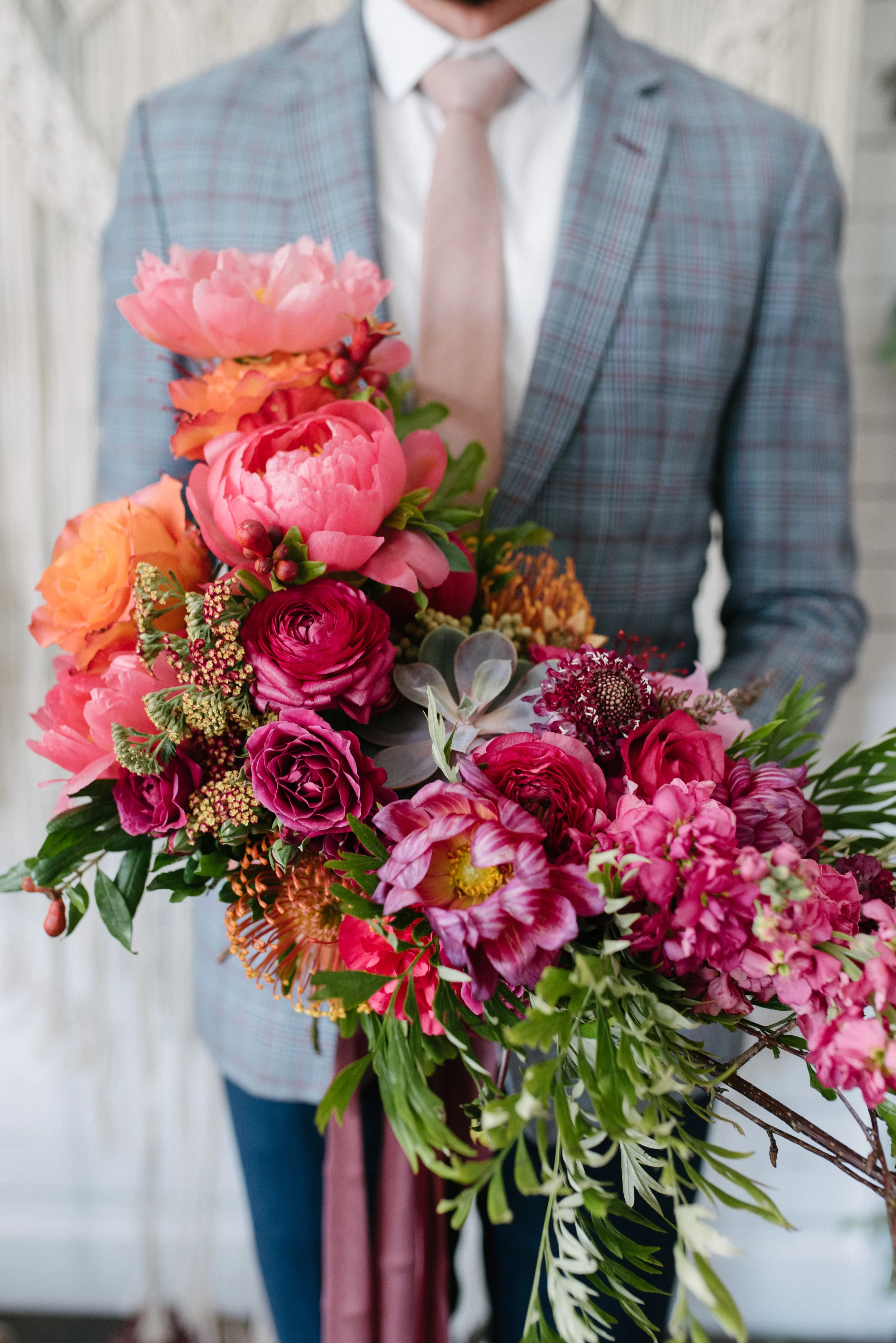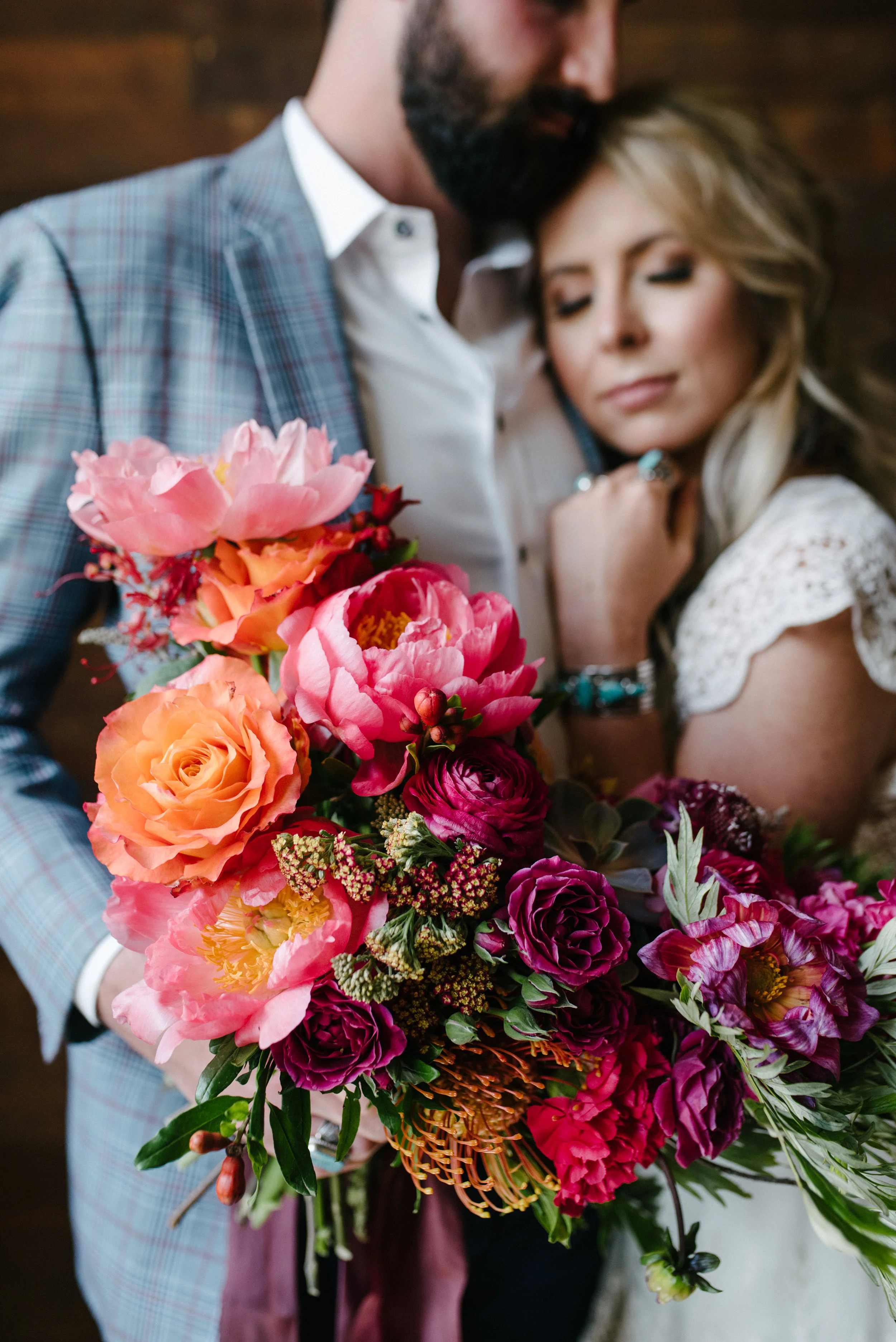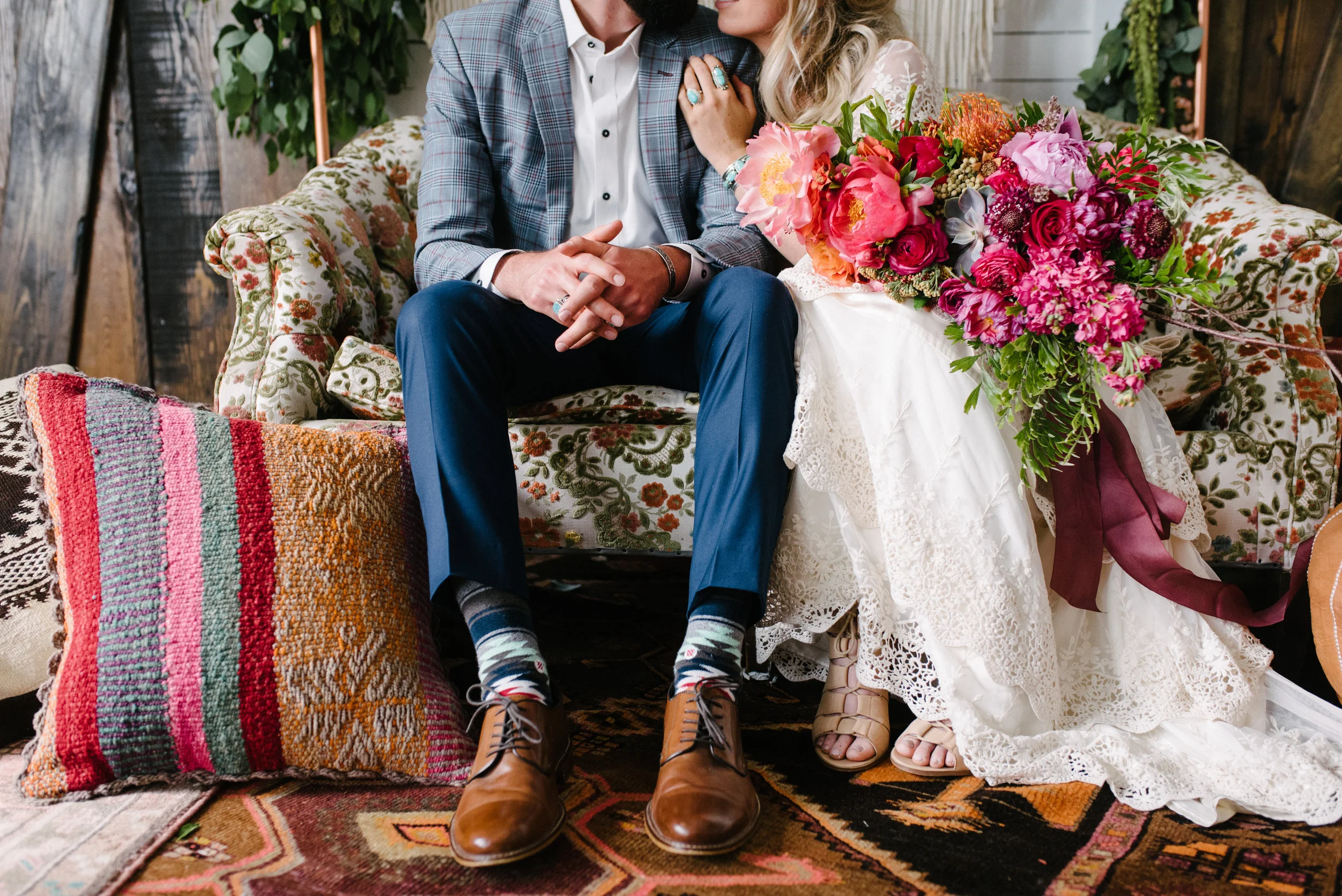 Just because you’re eloping, doesn’t mean you can’t don a killer outfit. Sure, we’re thinking Southwest, but a custom suit—blue trousers and a plaid jacket—keeps the scene cool and contemporary.