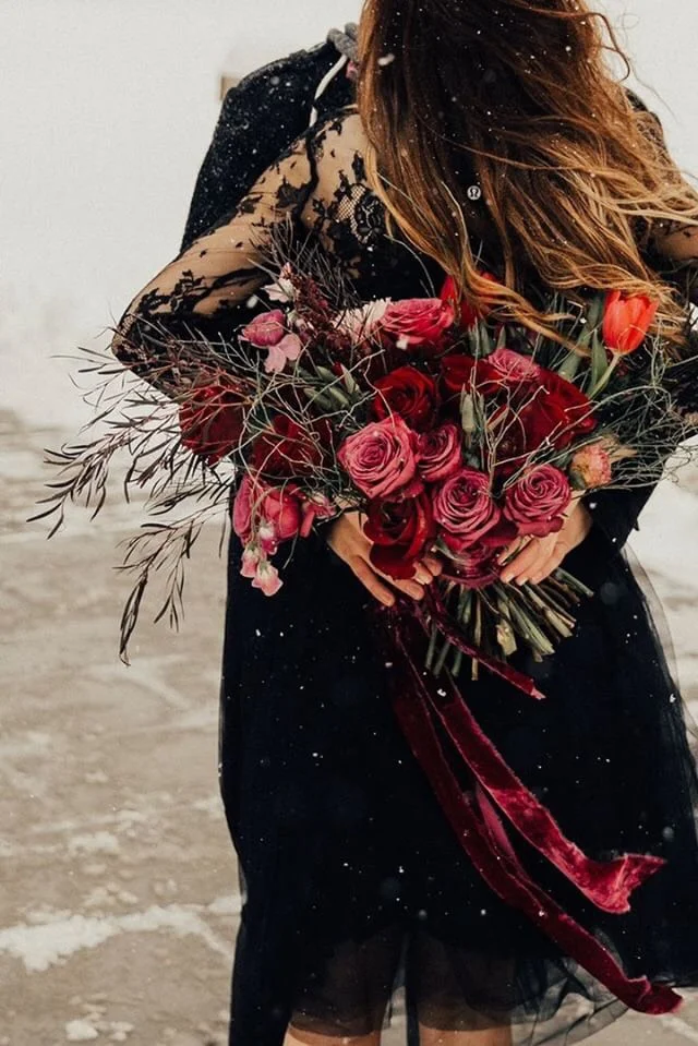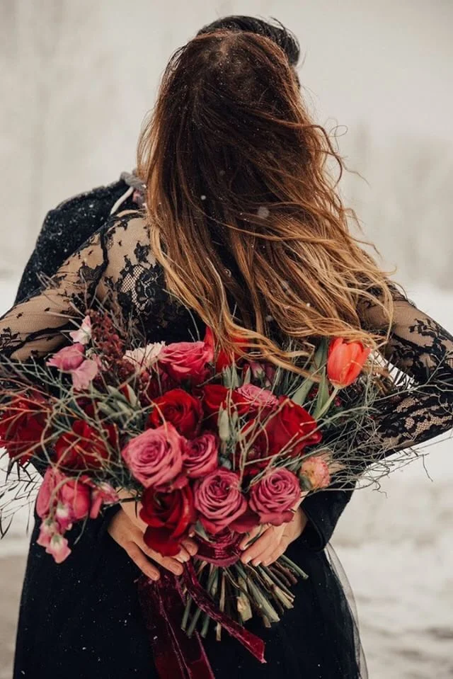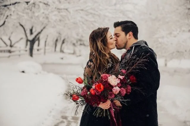 Love is in the Air! It's that month when we celebrate love, in all it's forms, but of course romantic love is at the top of that list. This adorable couple is the epitome and cute and fun and romantic and well, again, adorable. So making a little bouquet for them was a treat. What was even more of a treat? The SNOW!!!