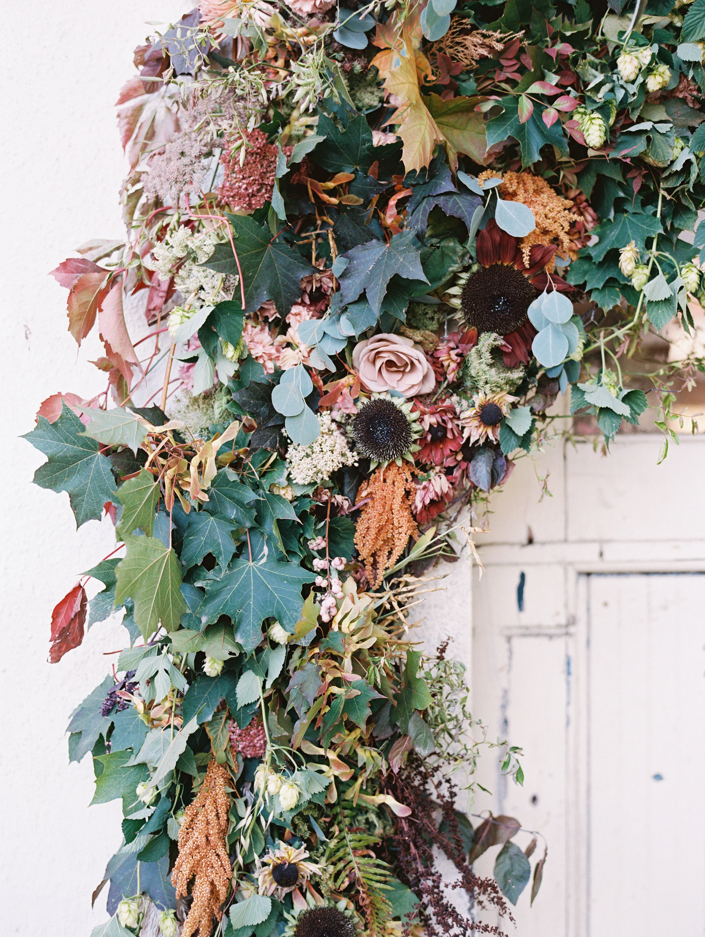 There’s no better place for a long, beautiful piece of garland than down the table as a runner. If you’ll be having long tables at your reception, consider adding greenery to the center as a table runner. They’re a simple way to make the table decor feel effortless and still leave plenty of space for the place settings, food and drinks.
